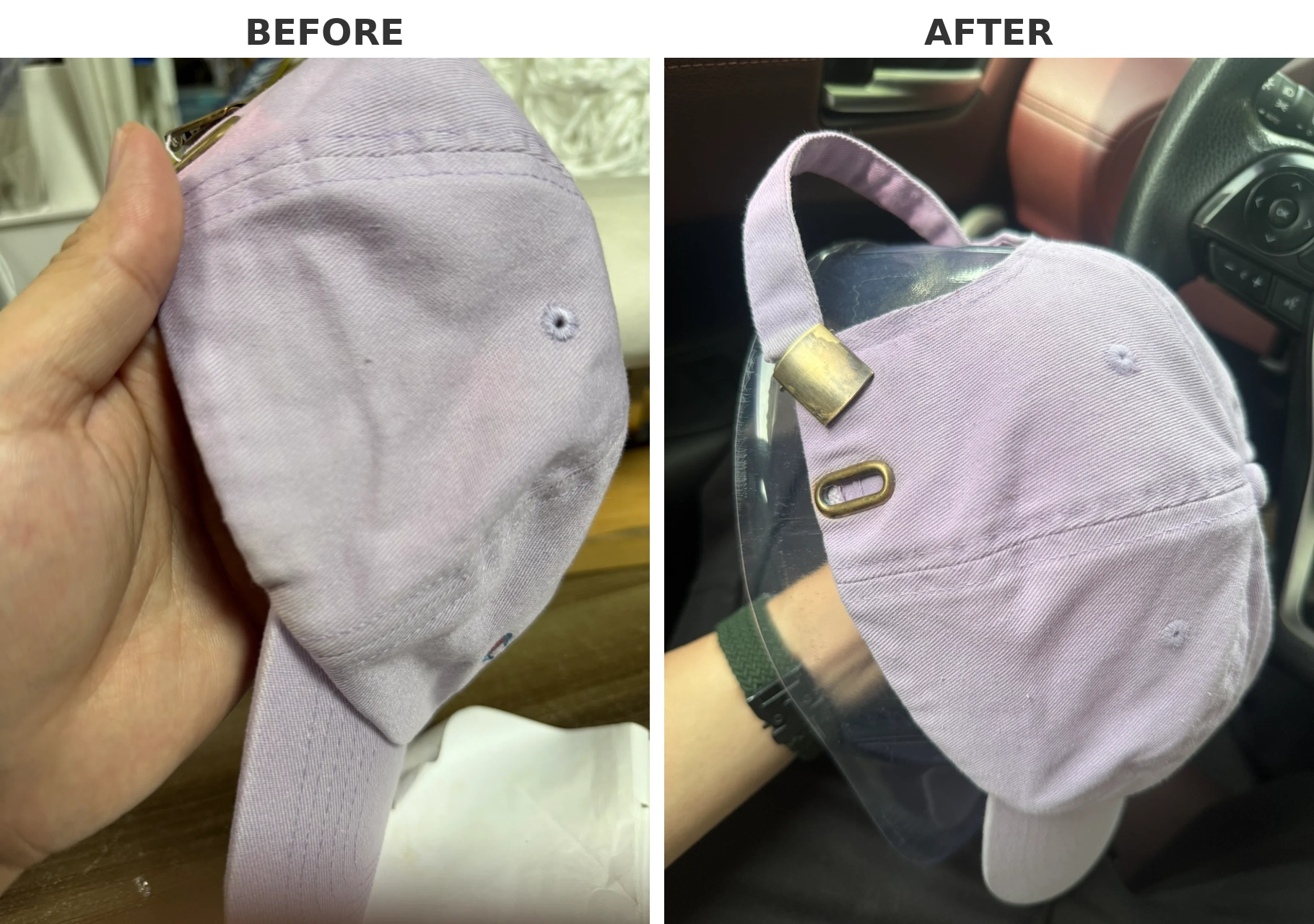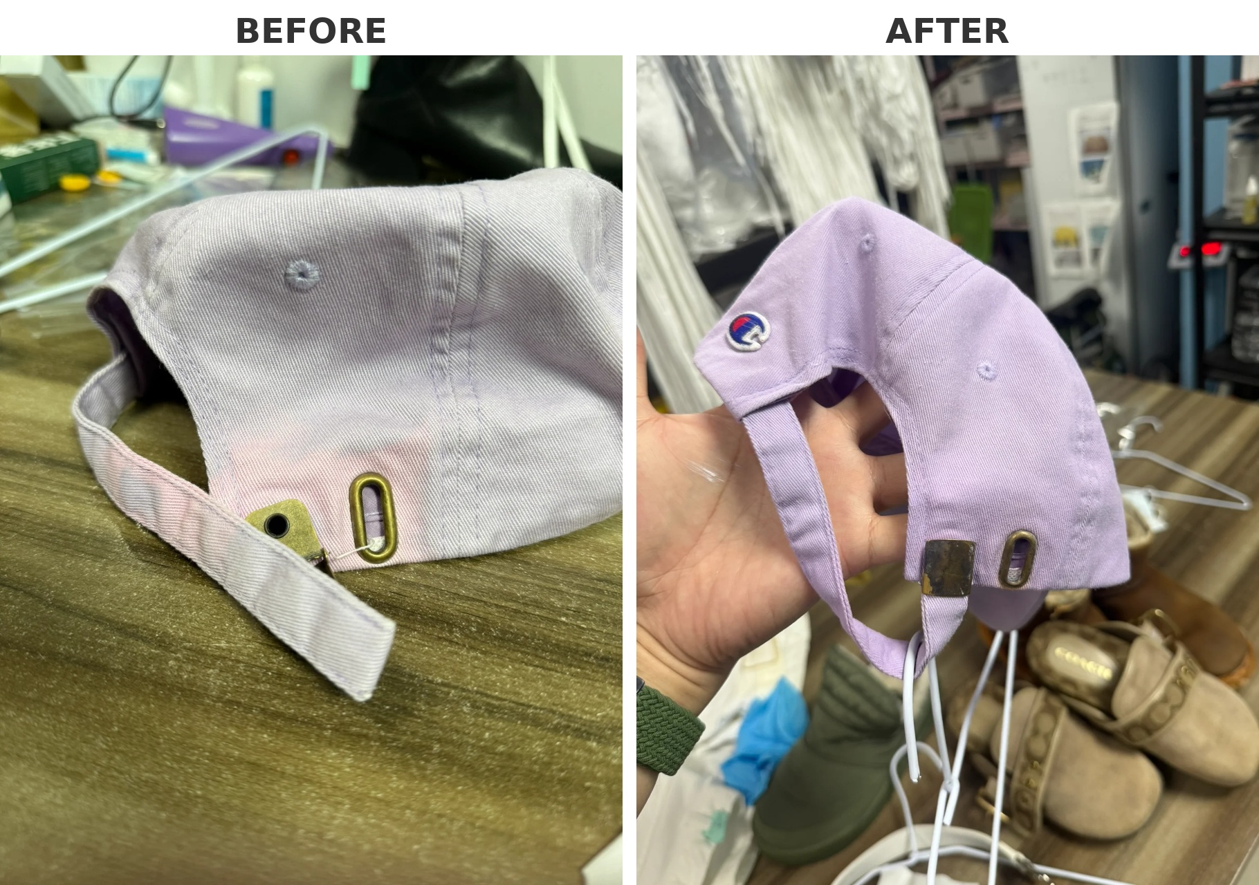 When this hat was brought in, the area around the metal buckle had completely faded.